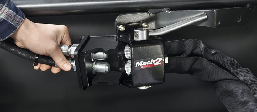 Tette, flate koblinger på MACH og MACH 2 hindrer oljesøl ved til- og frakopling.